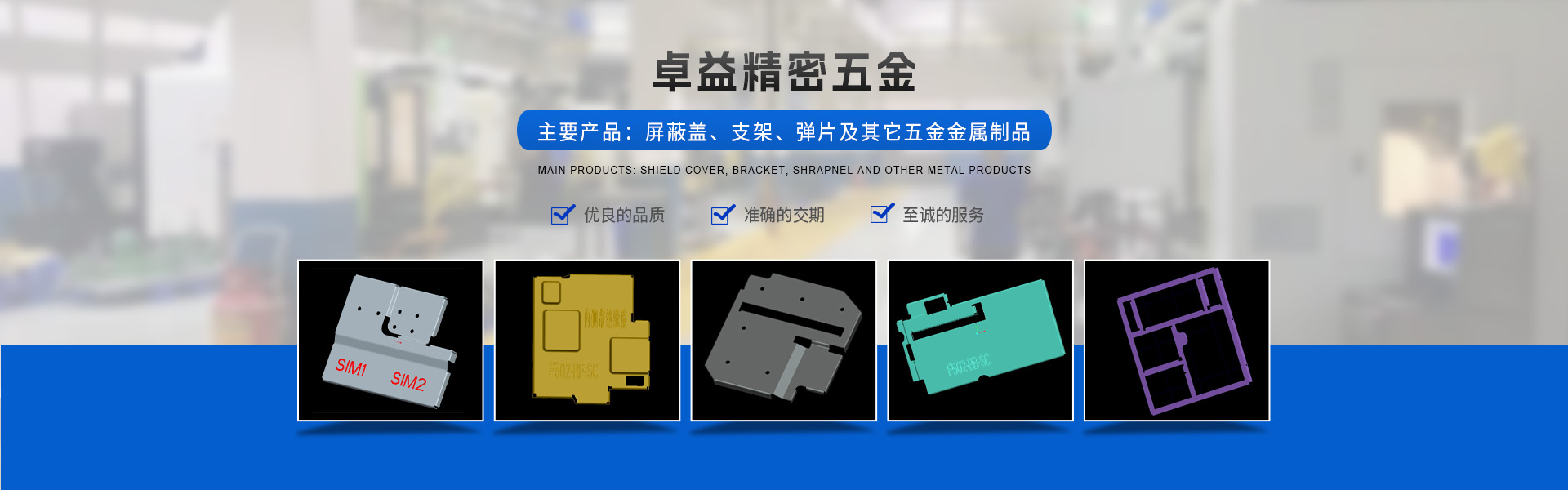 東莞市卓益精密五金有限公司(原深圳市卓杰五金有限公司)創(chuàng)辦于2008年,2016年由于公司業(yè)務(wù)及規(guī)模升級(jí)擴(kuò)遷致東莞市。本公司是一家五金模具研發(fā)、五金產(chǎn)品制造及銷售為一體的專業(yè)制造性企業(yè)。目前主要產(chǎn)品有屏蔽蓋、支架、彈片及其它五金金屬制品。